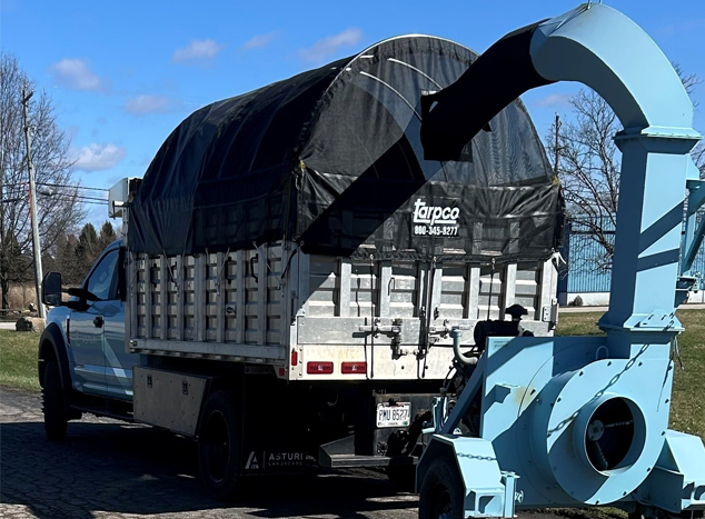 No more building boxes in the fall to handle your leaf needs. This system is custom made for your truck or trailer. Easy on and off operation when time is important to you and your company.